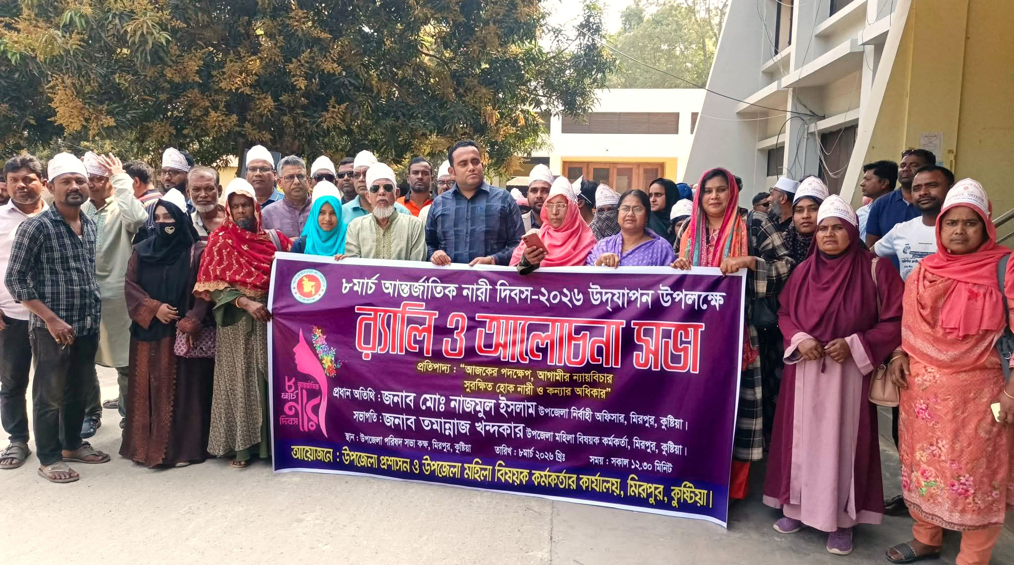 “আজকের পদক্ষেপ, আগামীর ন্যায়বিচার: সুরক্ষিত হোক নারী ও কন্যাদের অধিকার” এই প্রতিপাদ্যকে সামনে রেখে কুষ্টিয়ার মিরপুর উপজেলায় আন্তর্জাতিক নারী দিবস-২০২৬ উদযাপন করা হয়েছে। রোববার (৮ মার্চ) সকাল ১০টায় উপজেলা প্রশাসন ও উপজেলা মহিলা বিষয়ক কর্মকর্তার কার্যালয়ের আয়োজনে দিবসটি উপলক্ষে বর্ণাঢ্য র্যালি ও আলোচনা সভা অনুষ্ঠিত হয়। সকাল সাড়ে ১০টায় উপজেলা পরিষদ চত্বর থেকে একটি বর্ণাঢ্য র্যালি বের করা হয়। র্যালিটি উপজেলার প্রধান সড়ক প্রদক্ষিণ করে একই স্থানে গিয়ে শেষ হয়। র্যালিতে বিভিন্ন শিক্ষাপ্রতিষ্ঠানের ছাত্রী, নারী উদ্যোক্তা, এনজিও কর্মী ও সুশীল সমাজের প্রতিনিধিরা অংশ নেন। এ সময় নারীর ক্ষমতায়ন, নিরাপত্তা ও অধিকার প্রতিষ্ঠার সচেতনতামূলক বিভিন্ন প্ল্যাকার্ড ও ফেস্টুন হাতে নিয়ে অংশগ্রহণকারীরা শ্লোগান দেন। পরে উপজেলা পরিষদ সভাকক্ষে অনুষ্ঠিত আলোচনা সভায় সভাপতিত্ব করেন উপজেলা মহিলা বিষয়ক কর্মকর্তা তুমানুজ্জা খন্দকার। প্রধান অতিথি হিসেবে বক্তব্য রাখেন উপজেলা নির্বাহী অফিসার মোঃ নাজমুল ইসলাম। প্রধান অতিথির বক্তব্যে ইউএনও নাজমুল ইসলাম বলেন, “নারীদের প্রতি বৈষম্য ও সহিংসতা রোধে শুধু সরকার নয়, সমাজের সব স্তরের মানুষকে এগিয়ে আসতে হবে। শিক্ষা, কর্মসংস্থান ও সিদ্ধান্ত গ্রহণের প্রক্রিয়ায় নারীদের অংশগ্রহণ বাড়ানোর মাধ্যমেই সত্যিকারের উন্নয়ন সম্ভব।” তিনি নারী নির্যাতন প্রতিরোধে আইনের কঠোর প্রয়োগ এবং মেয়েদের শিক্ষার প্রতি বিশেষ গুরুত্বারোপ করেন। সভাপতির বক্তব্যে তুমানুজ্জা খন্দকার নারী দিবসের তাৎপর্য তুলে ধরে বলেন, “নারীর অধিকার প্রতিষ্ঠায় সরকারের পাশাপাশি বেসরকারি সংস্থা ও জনপ্রতিনিধিদের সম্মিলিত প্রচেষ্টা জরুরি। মিরপুর উপজেলায় নারী উন্নয়নে গৃহীত বিভিন্ন কর্মসূচি ও সাফল্যের চিত্রও তুলে ধরেন তিনি।” সভায় অন্যান্যের মধ্যে বক্তব্য রাখেন উপজেলার বিভিন্ন সরকারি দপ্তরের কর্মকর্তা, শিক্ষক, সাংবাদিক ও সিএসও প্রতিনিধিরা। আলোচনা শেষে নারী উন্নয়নে অবদান রাখায় কয়েকজন সফল নারী উদ্যোক্তা ও শিক্ষার্থীদের সম্মাননা স্মারক প্রদান করা হয়। উপজেলা মহিলা বিষয়ক কর্মকর্তার কার্যালয় সূত্রে জানা গেছে, দিবসটি উপলক্ষে সপ্তাহব্যাপী বিভিন্ন কর্মসূচি গ্রহণ করা হয়েছে। এর মধ্যে রয়েছে স্কুল-কলেজে সচেতনতামূলক সেমিনার, নারী স্বাস্থ্য বিষয়ক ক্যাম্পেইন ও সাংস্কৃতিক অনুষ্ঠান।